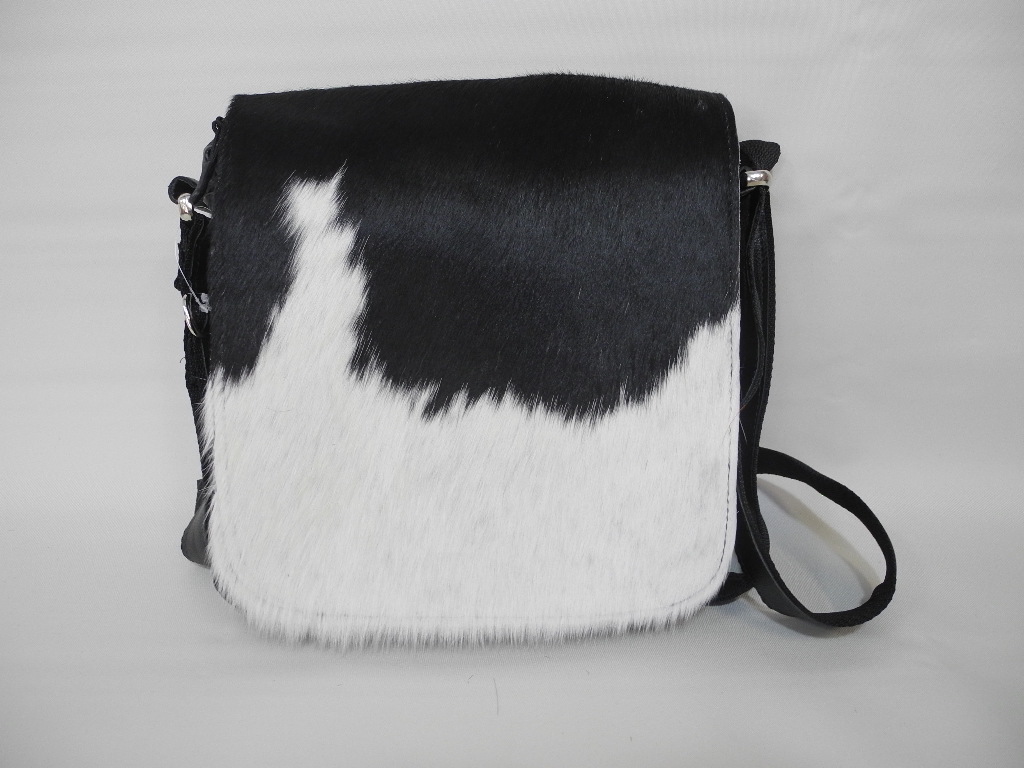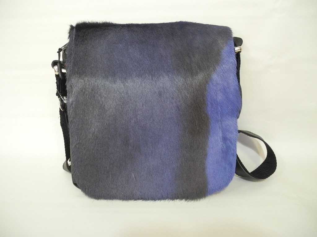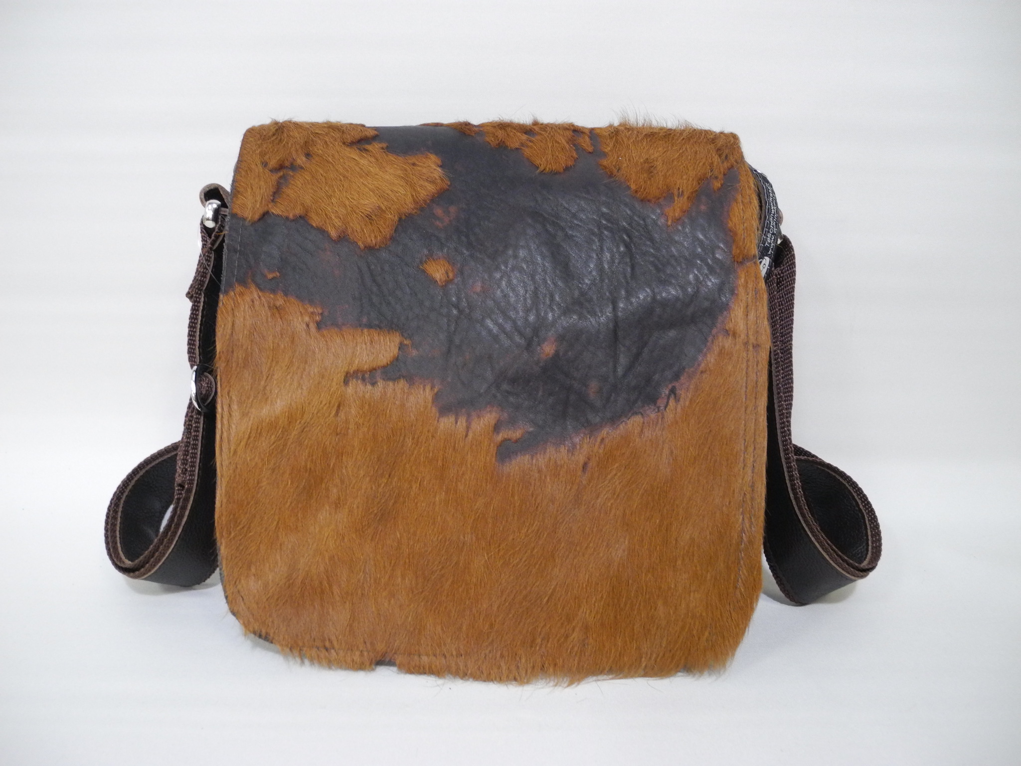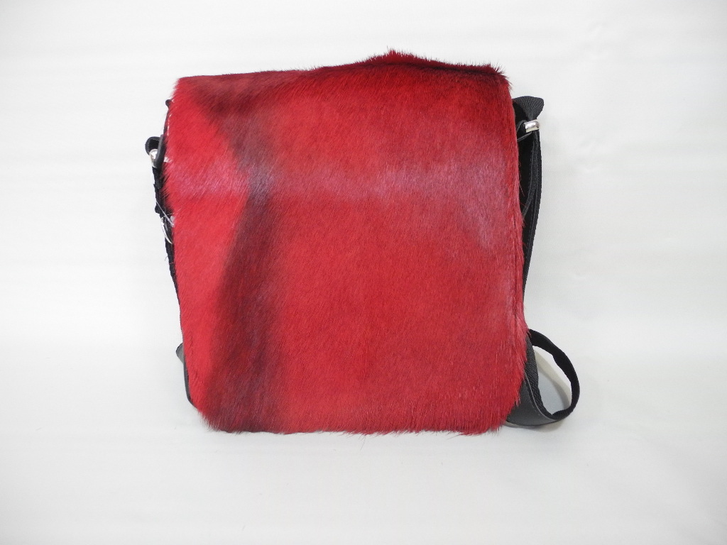 Breite ca. 26 cm, Höhe ca. 26 cm, Tiefe ca. 6 cm. Die Schultergurtlänge ist individuell einstellbar. Die Tasche besteht aus einem Hauptfach und einer Innentasche, sowie aus einem Außenfach unter der Klappe, jeweils mit Reißverschluss. Hinten an der Tasche ist noch zusätzlich ein offenes Fach. Die Klappe ist mit einem versteckten Magnetverschluss versehen, welcher die Klappe vorn leicht fixiert.Die Klappe ist an diesem Modell durch die Klettenbandbefestigung austauschbar. Der Taschenkorpus besteht aus echtem Leder.