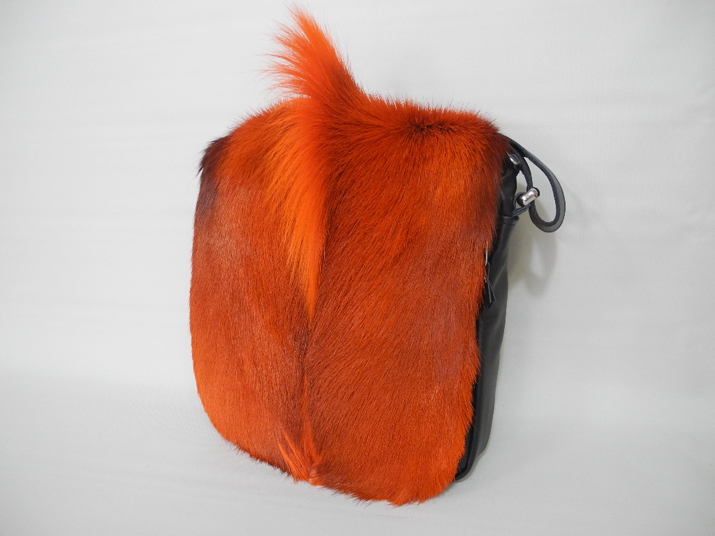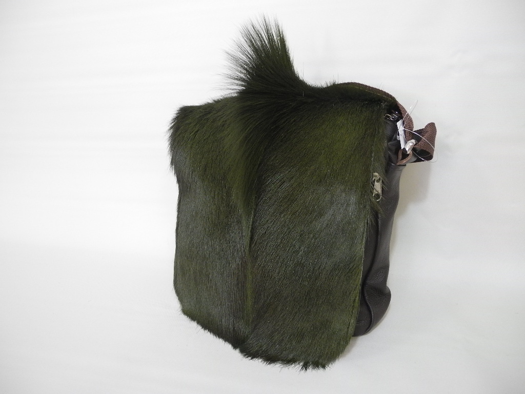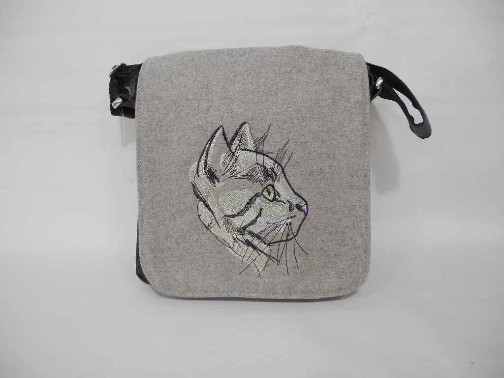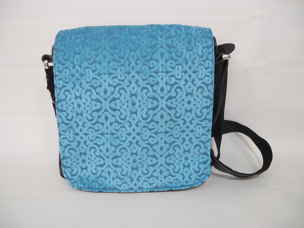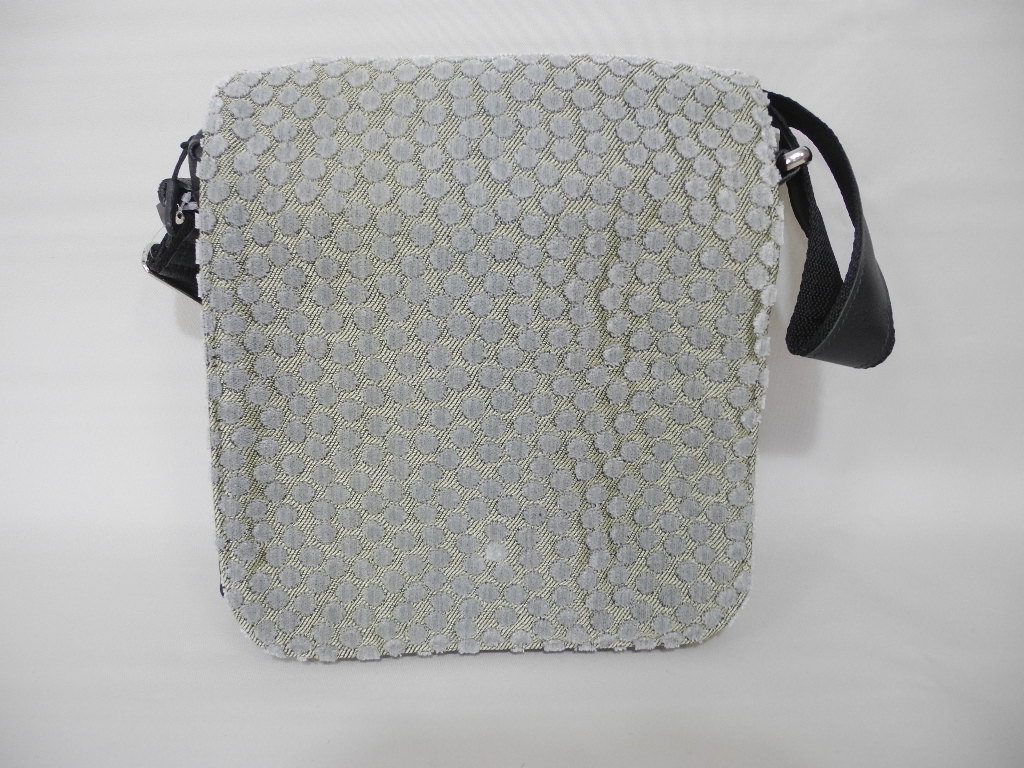 Breite ca. 26 cm, Höhe ca. 26 cm, Tiefe ca. 6 cm. Die Schultergurtlänge ist individuell einstellbar. Die Tasche besteht aus einem Hauptfach und einer Innentasche, sowie aus einem Außenfach unter der Klappe, jeweils mit Reißverschluss. Hinten an der Tasche ist noch zusätzlich ein offenes Fach. Die Klappe ist mit einem versteckten Magnetverschluss versehen, welcher die Klappe vorn leicht fixiert.Die Klappe ist an diesem Modell durch die Klettenbandbefestigung austauschbar. Der Taschenkorpus besteht aus echtem Leder.
